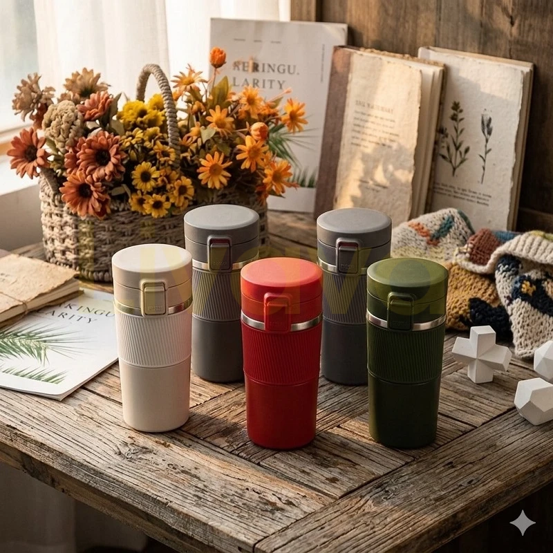 Motto Tasarımlı 600ml Çelik Termos – Sızdırmaz Kapaklı ve Kaymaz Gövdeli Kahve Mug
