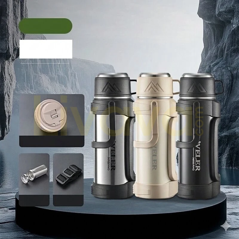 316 Çelik Outdoor Kamp Termosu – 1,2lt Bardaklı ve Süzgeçli 72 Saat Isı Korumalı Termos