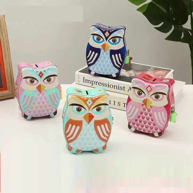 Baykuş Tasarımlı Metal Kumbara - Kilitli ve Anahtarlı Çocuk Tasarruf Kutusu