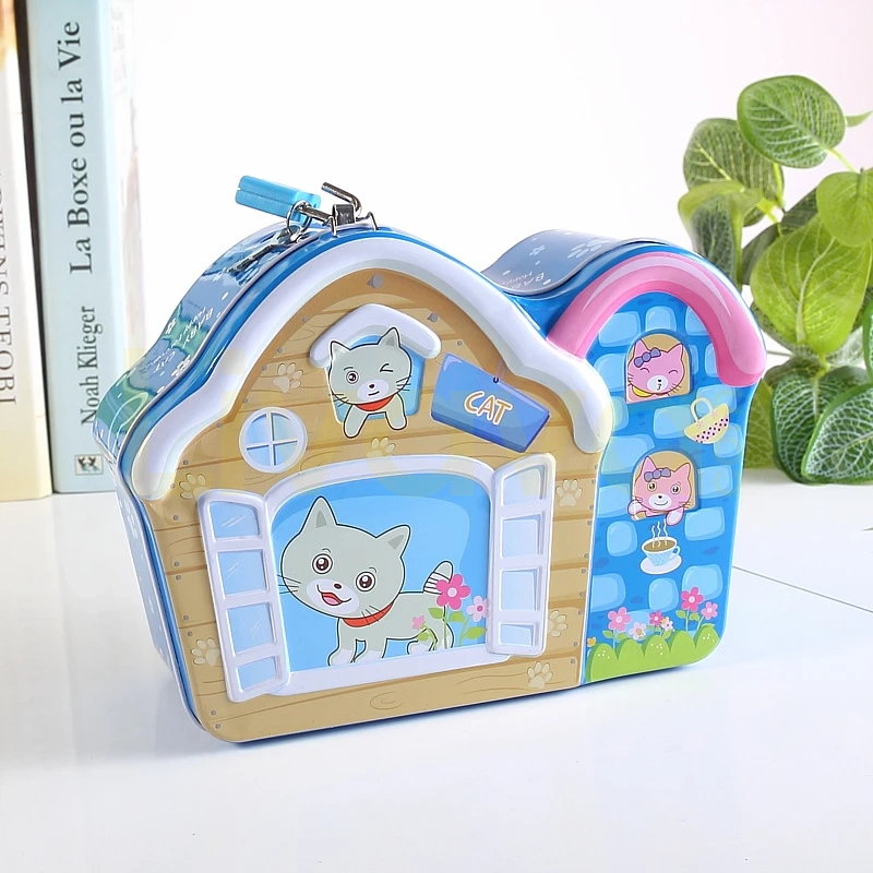 Kilitli Metal Kedili Kumbara Evi – Eğlenceli ve Güvenli Tasarruf