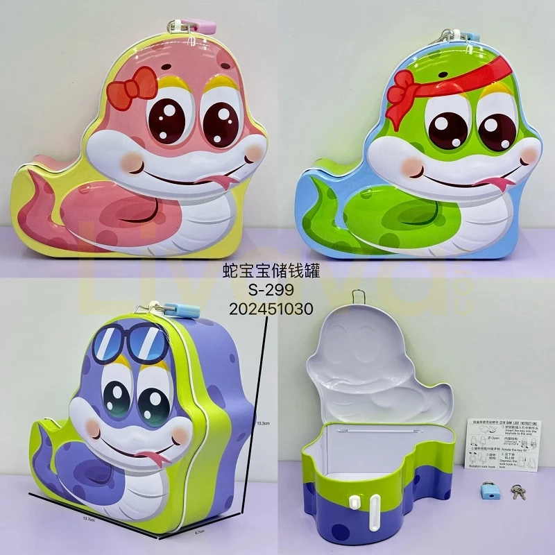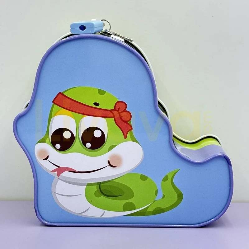 Çocukların para biriktirme alışkanlığını sıra dışı ve eğlenceli bir figürle tanıştırın! Neşeli bebek yılan tasarımıyla dikkat çeken bu metal kumbara, çocukların harçlıklarını biriktirirken hem eğlenmelerini hem de finansal sorumluluk kazanmalarını sağlar.