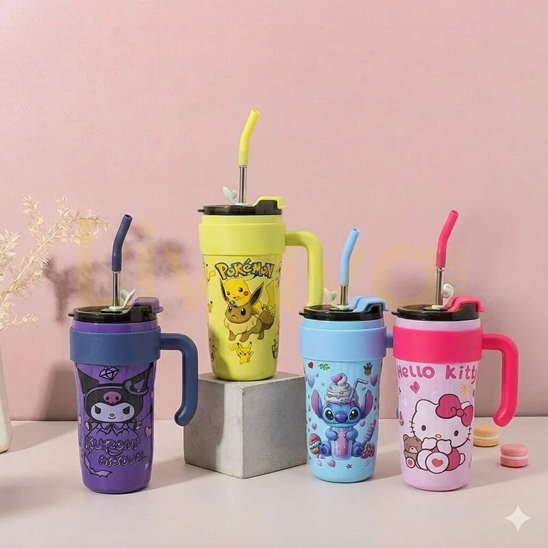 Pikachu Pipetli ve Kulplu Termos Bardak Mug – 1.2 Litre