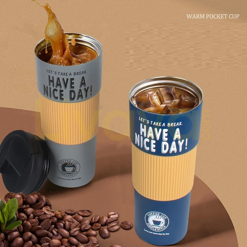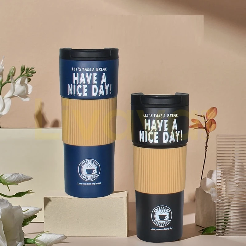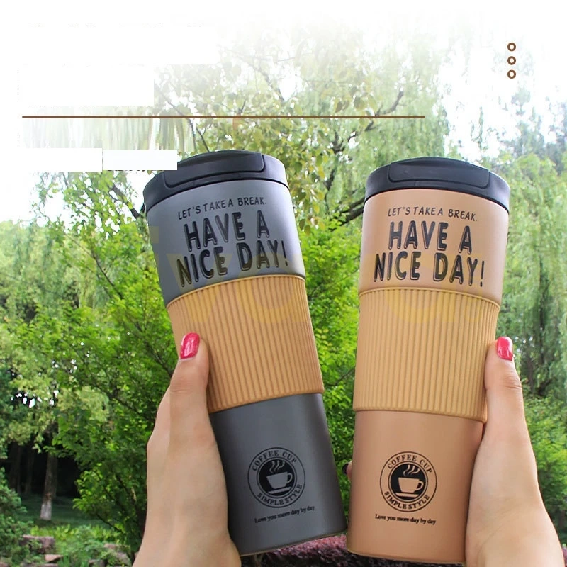 Paslanmaz Çelik Termos Bardak, 500ml Sızdırmaz Kapaklı Kahve Kupası, Askılı Taşınabilir Mug