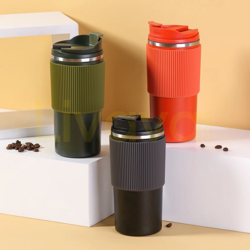 Sızdırmaz Kilitli Kapaklı Çelik Termos Mug 500 ml – Silikon Tutmaçlı Kahve Kupası